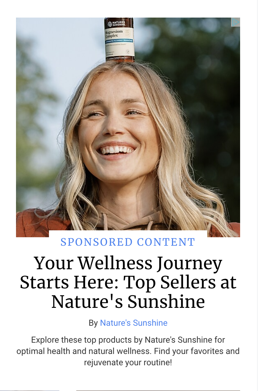 Drive awareness and consideration of Nature’s Sunshine as the supplement solution to live a healthy life from the inside out.