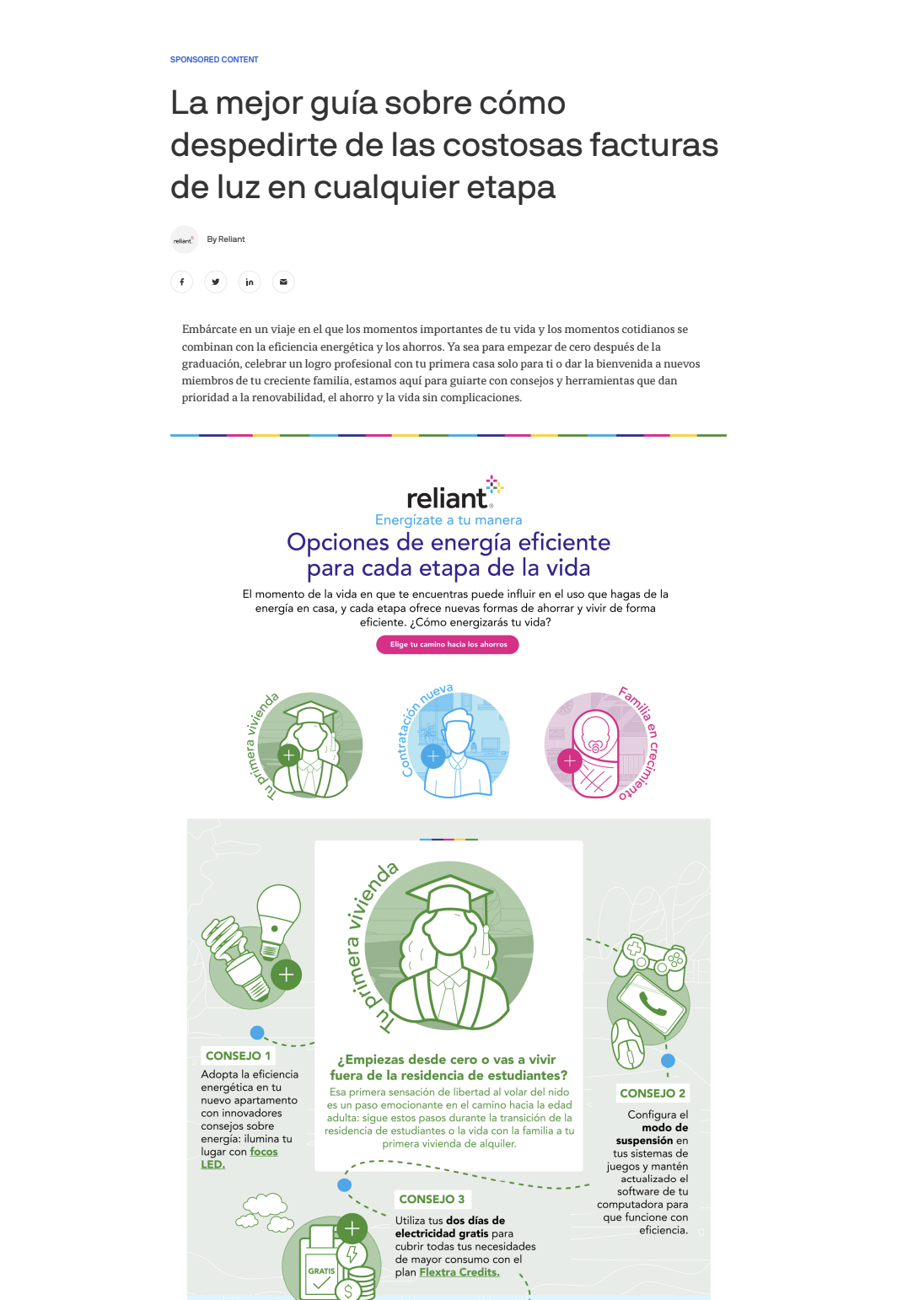 This campaign generated 14M+ impressions across display, stories, and infographic formats while exceeding key engagement benchmarks. By leading the strategy end-to-end—from thought starters to cross-functional collaboration with the design team on bilingual infographics and CIR insights—I helped translate Reliant’s solar messaging into high-performing content that increased brand awareness and consideration.